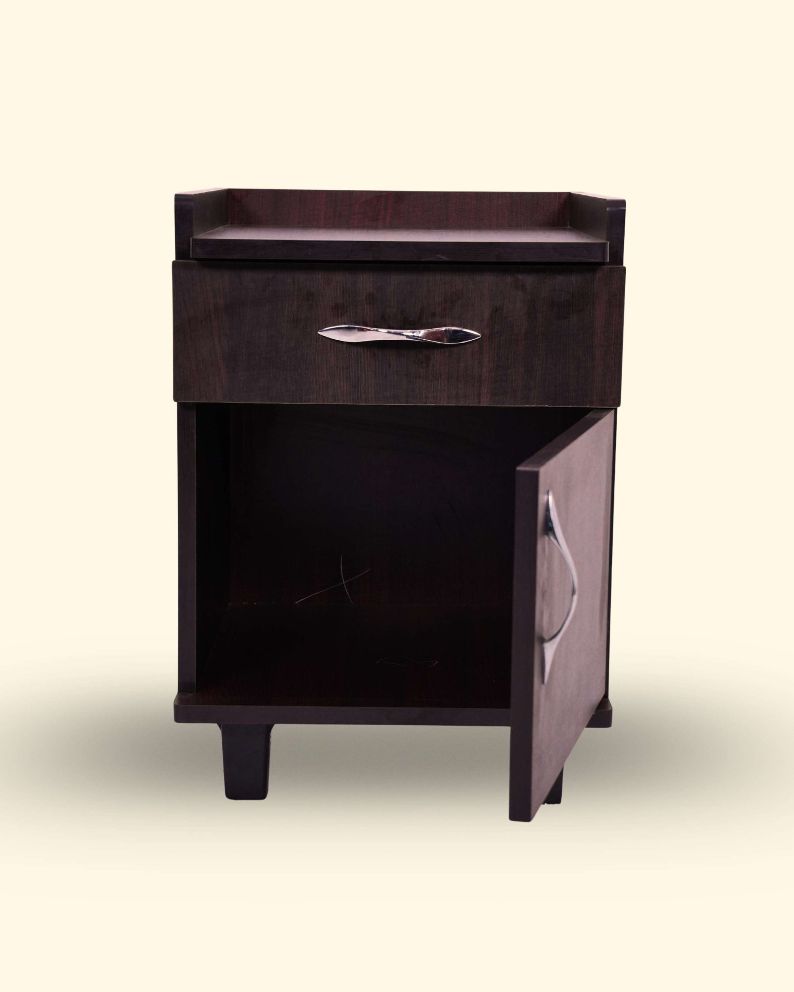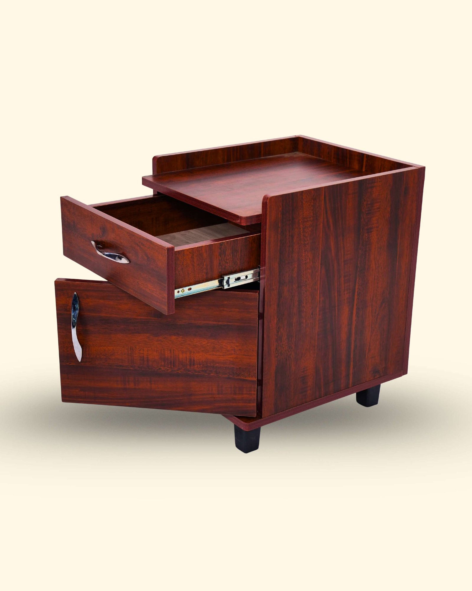 This Bedside Table is made from high-density engineered wood with strong double-sided boards for durability and daily use. It features a premium laminated finish available in Teak, Honey, and Light Walnut colors. Designed with convenient storage drawers and a spacious top surface, it is ideal for keeping lamps, books, mobile phones, and daily essentials. The smooth finish and compact design make it perfect for any bedroom setup in Hosur.