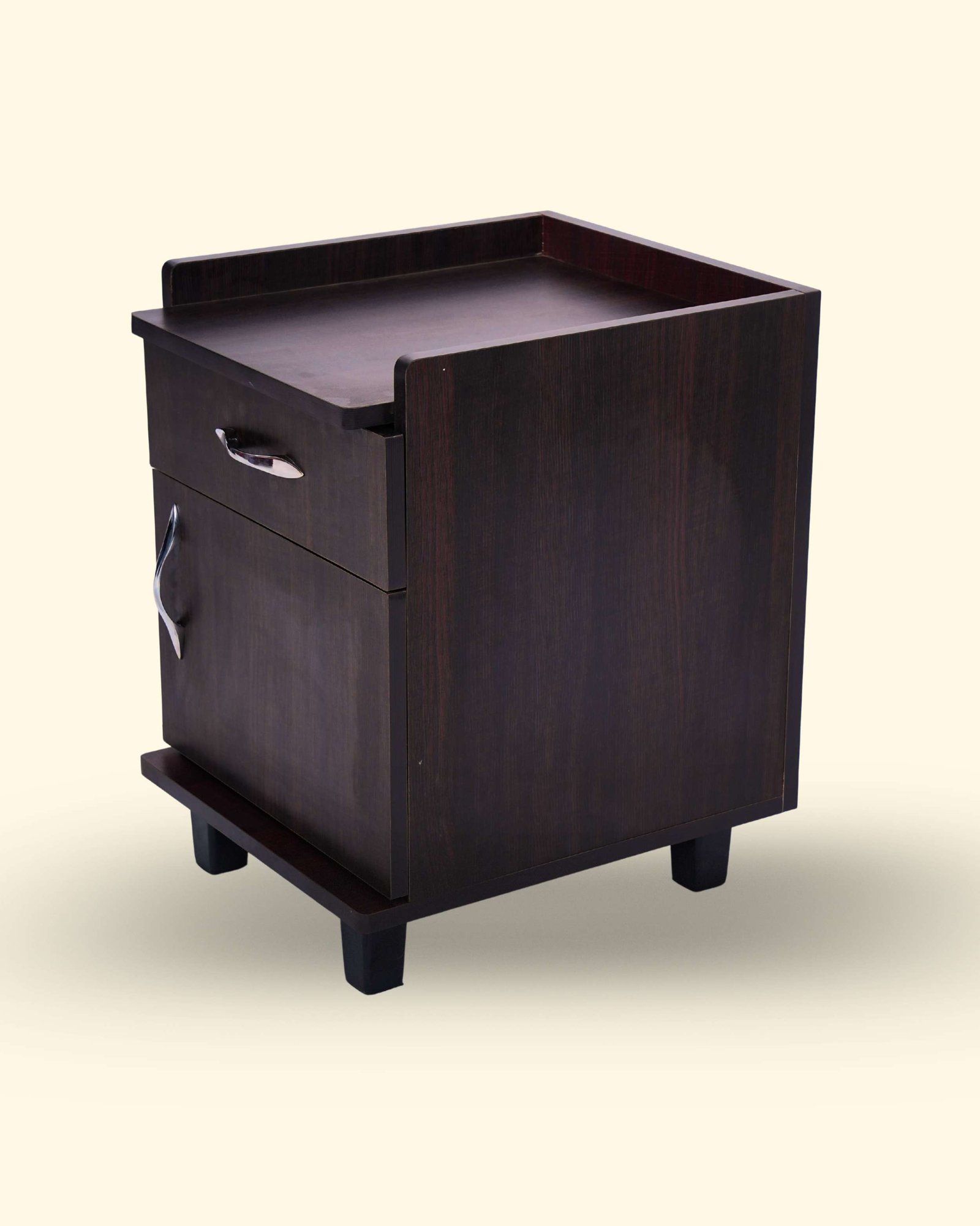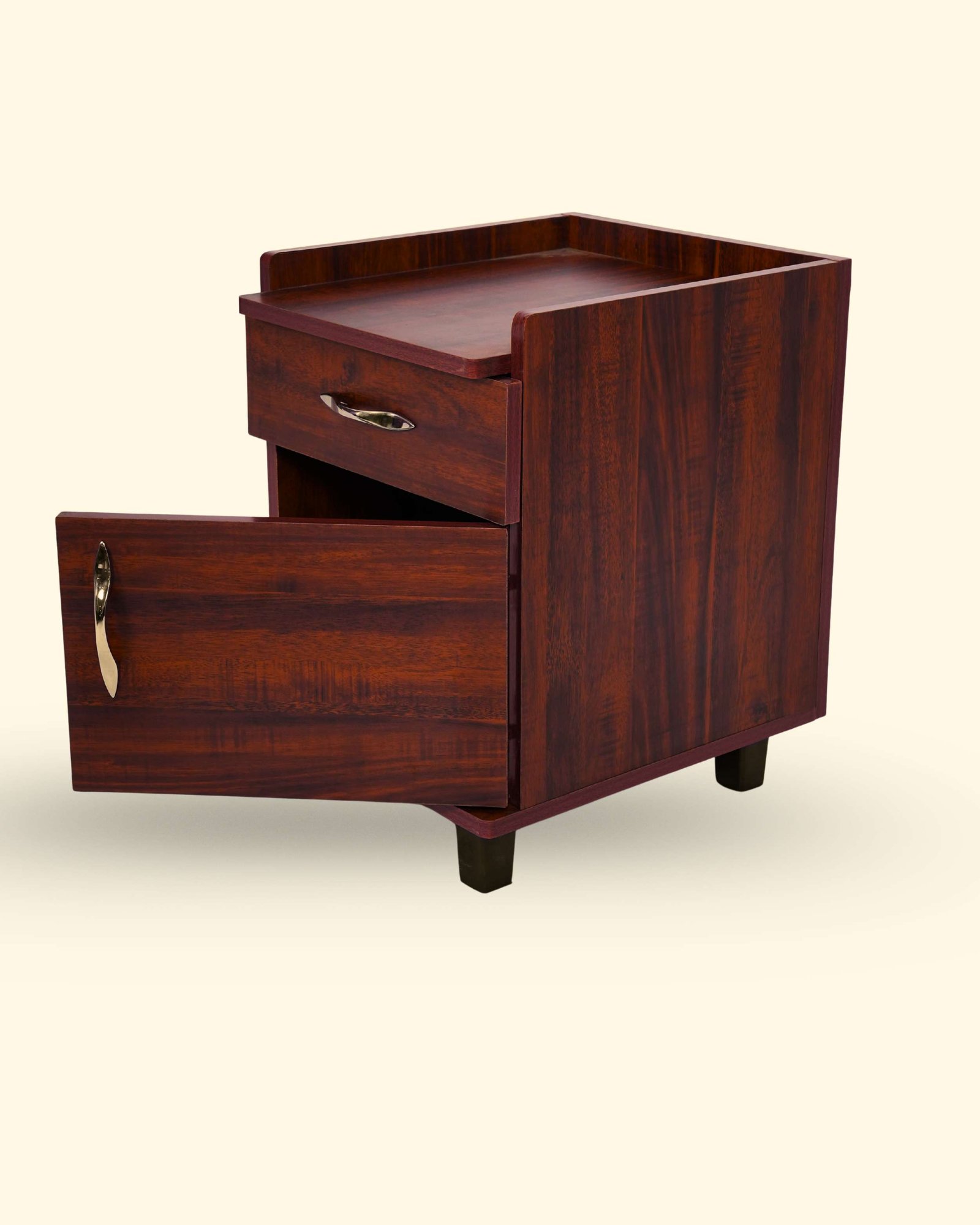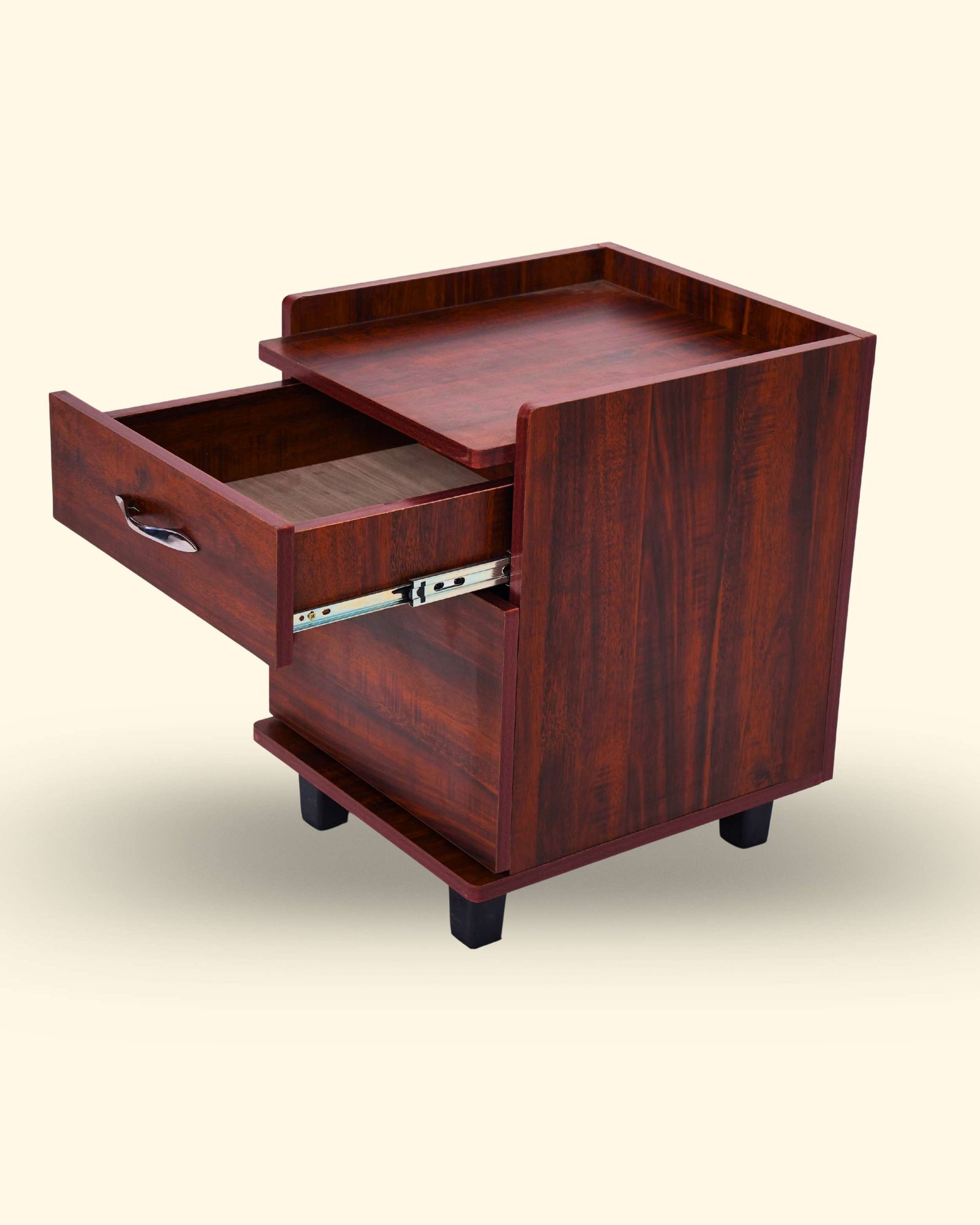 This Bedside Table is made from high-density engineered wood with strong double-sided boards for durability and daily use. It features a premium laminated finish available in Teak, Honey, and Light Walnut colors. Designed with convenient storage drawers and a spacious top surface, it is ideal for keeping lamps, books, mobile phones, and daily essentials. The smooth finish and compact design make it perfect for any bedroom setup in Hosur.