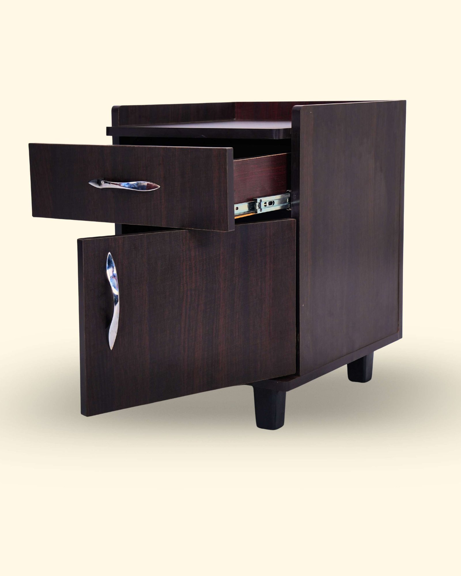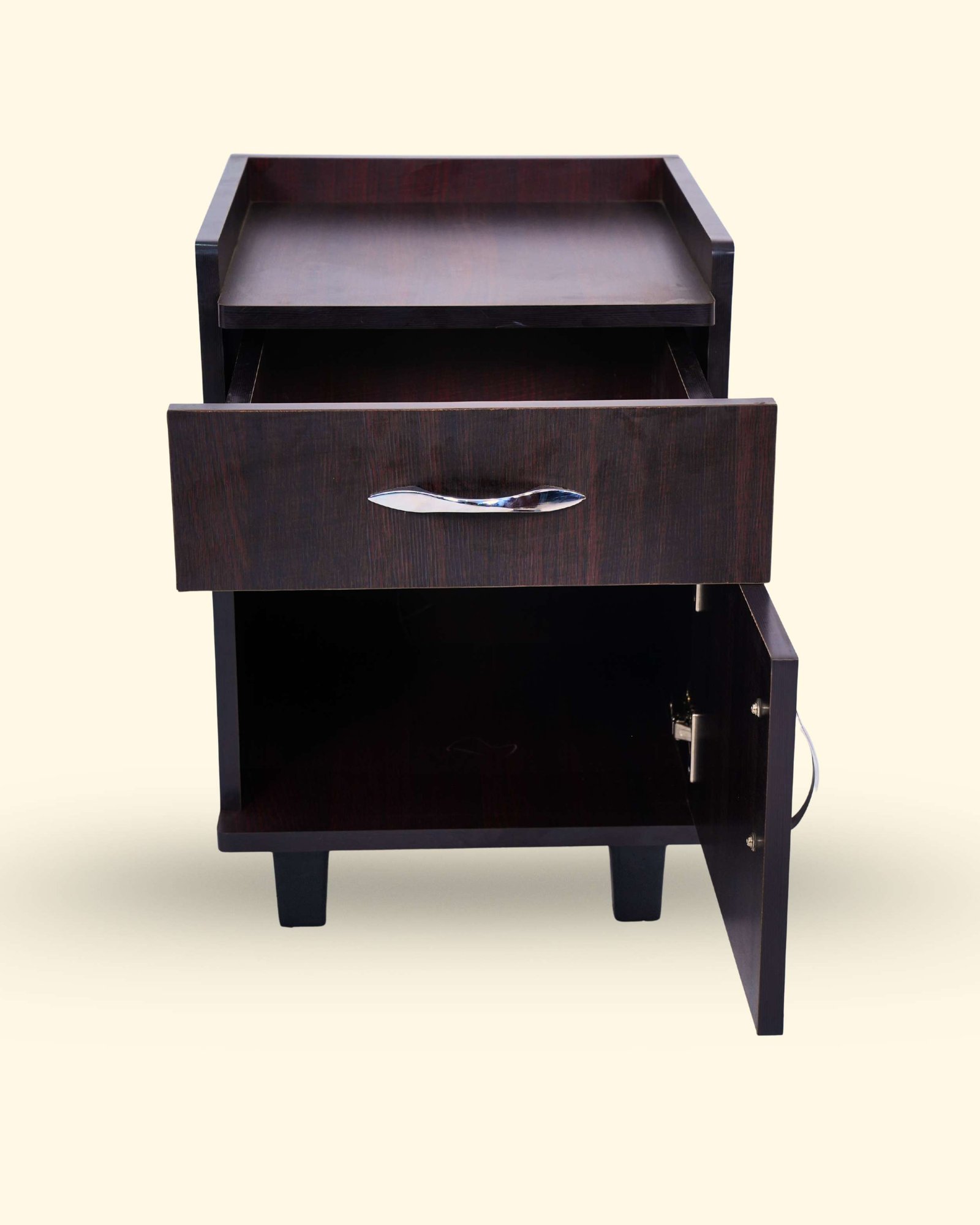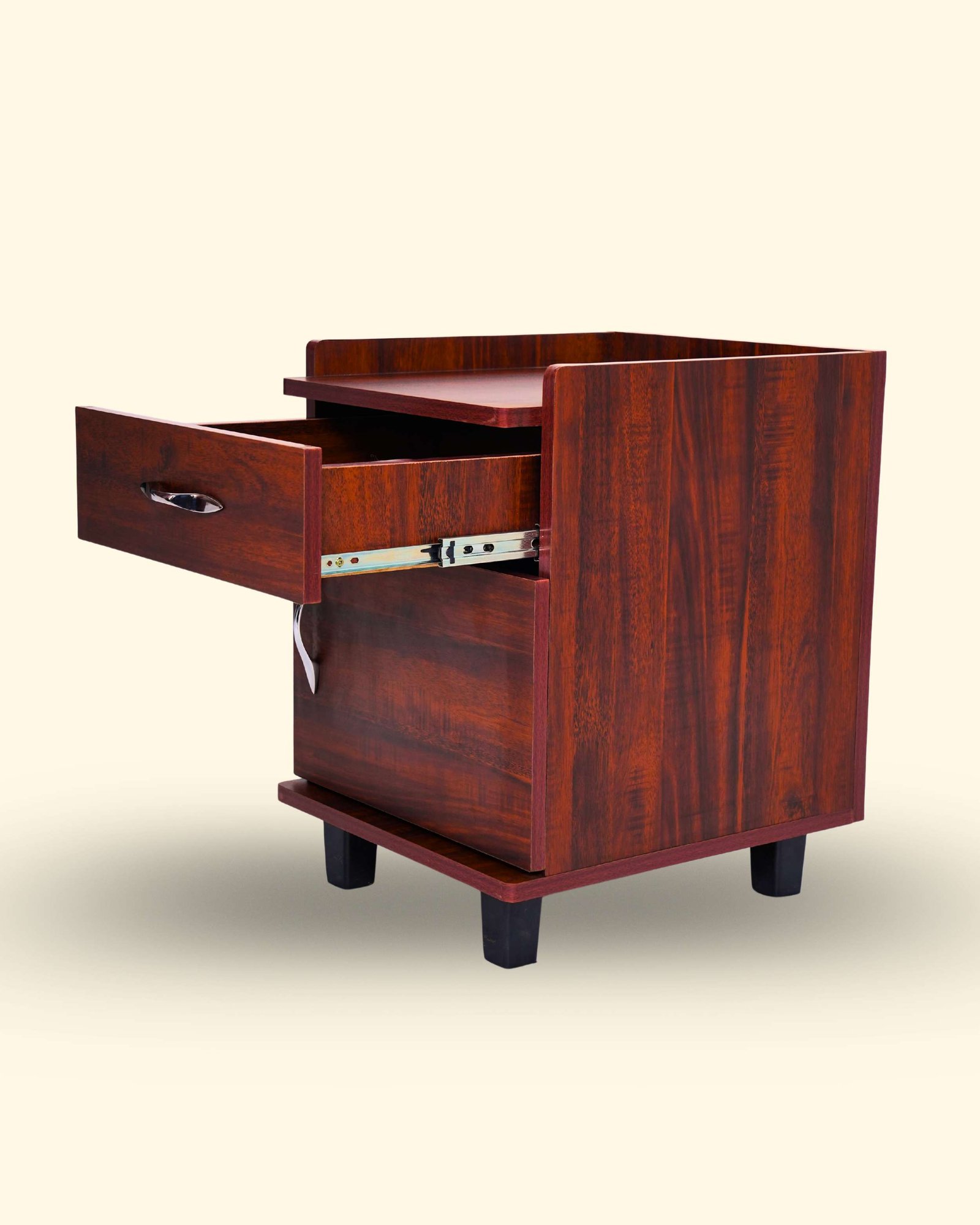 This Bedside Table is made from high-density engineered wood with strong double-sided boards for durability and daily use. It features a premium laminated finish available in Teak, Honey, and Light Walnut colors. Designed with convenient storage drawers and a spacious top surface, it is ideal for keeping lamps, books, mobile phones, and daily essentials. The smooth finish and compact design make it perfect for any bedroom setup in Hosur.